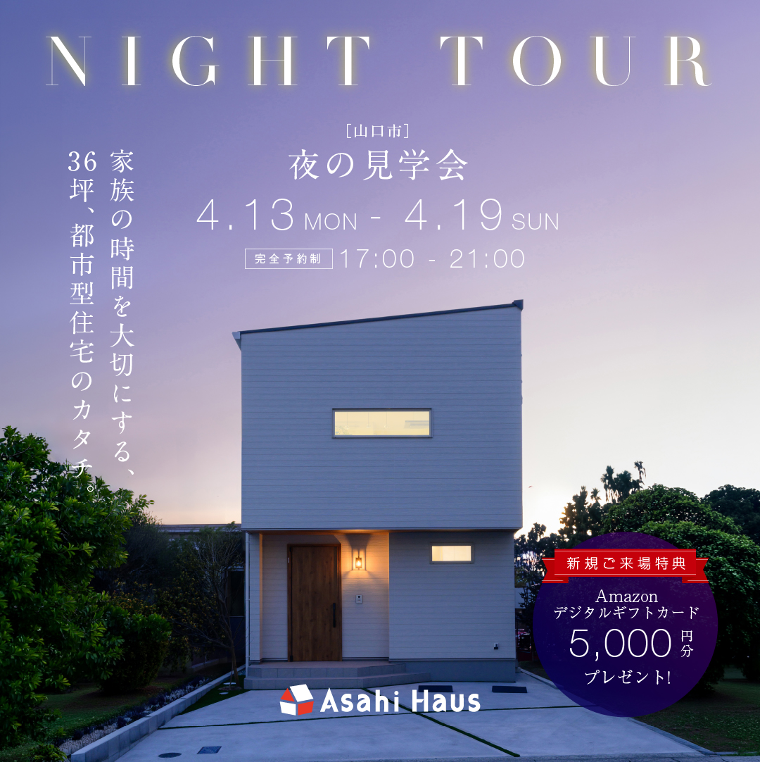 山口市・夜の完成見学会開催!| 4月13日(月)~19日(日)