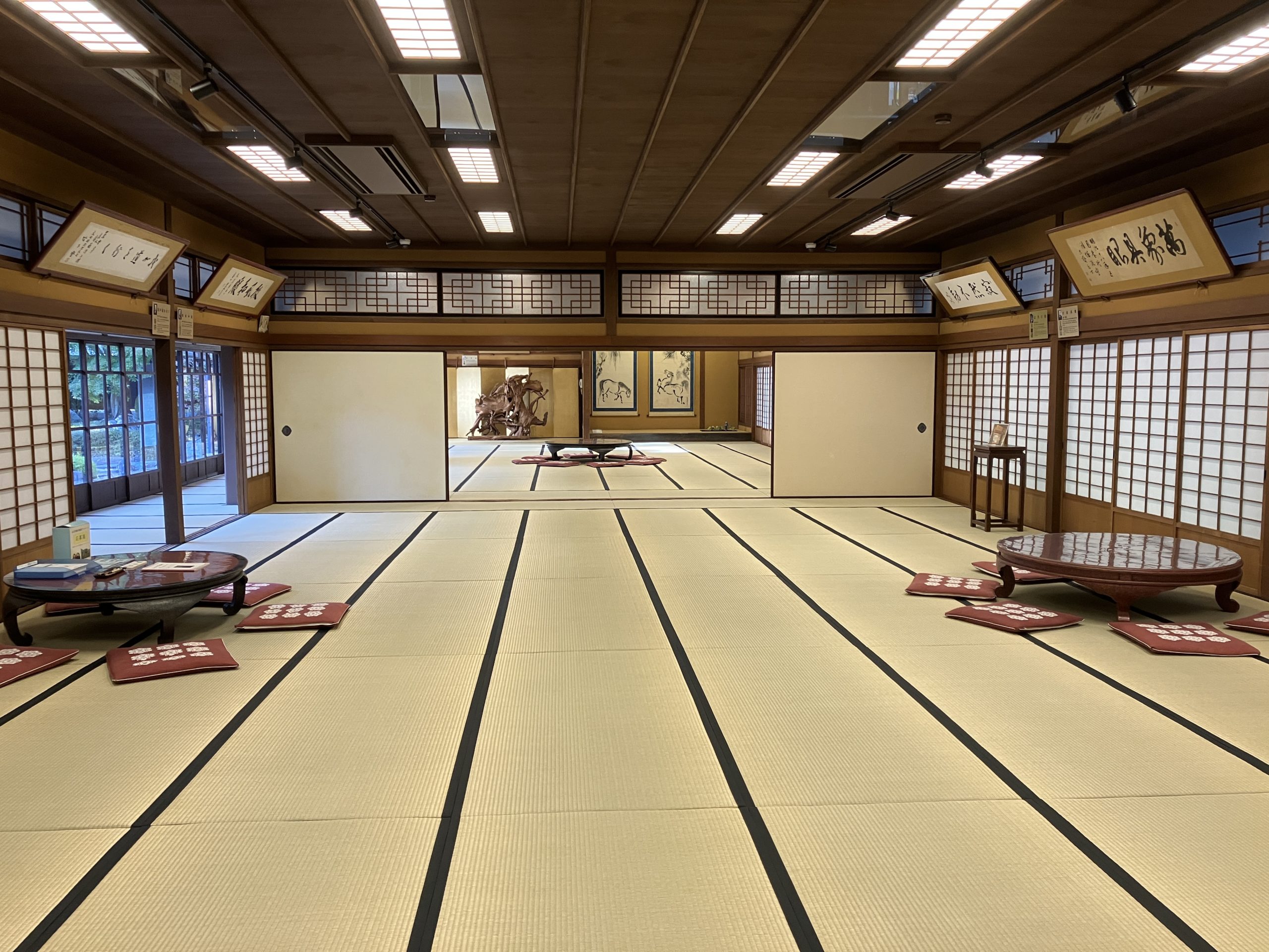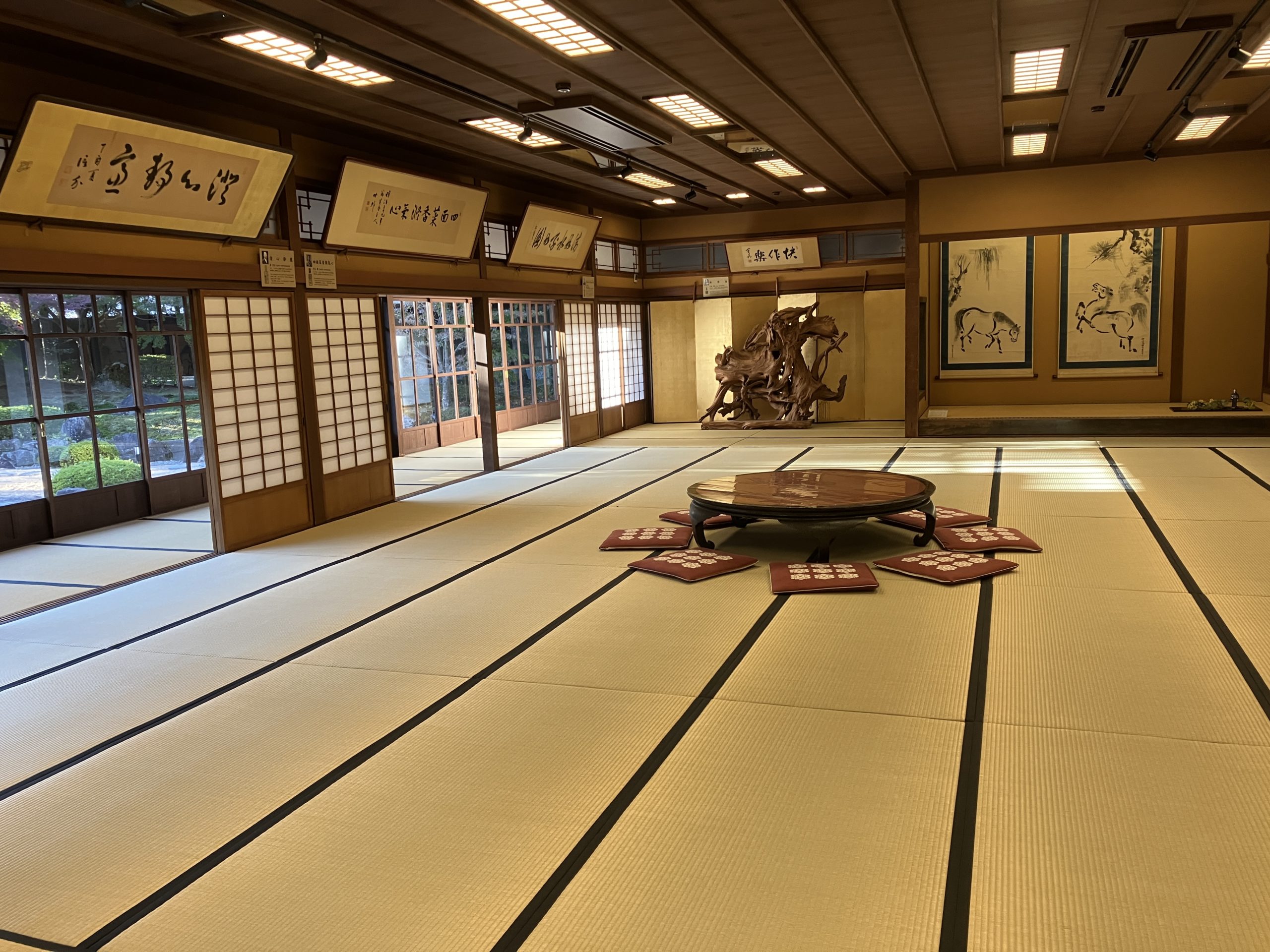 100畳敷きの大広間には、歴代首相や偉人の書が掛けられています。