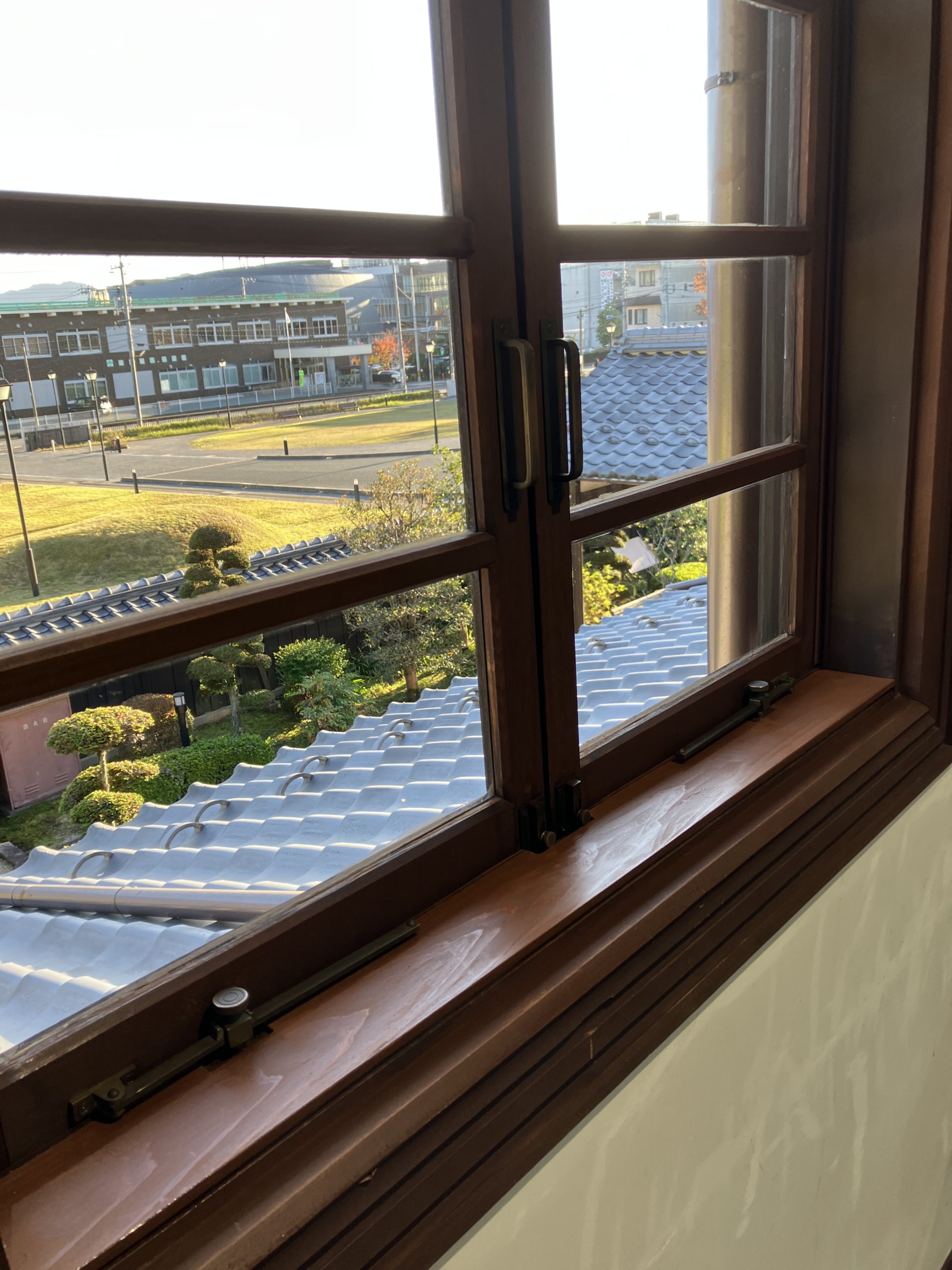 会議室の窓は、レトロな仕様をそのまま残して雰囲気を大事にしています。