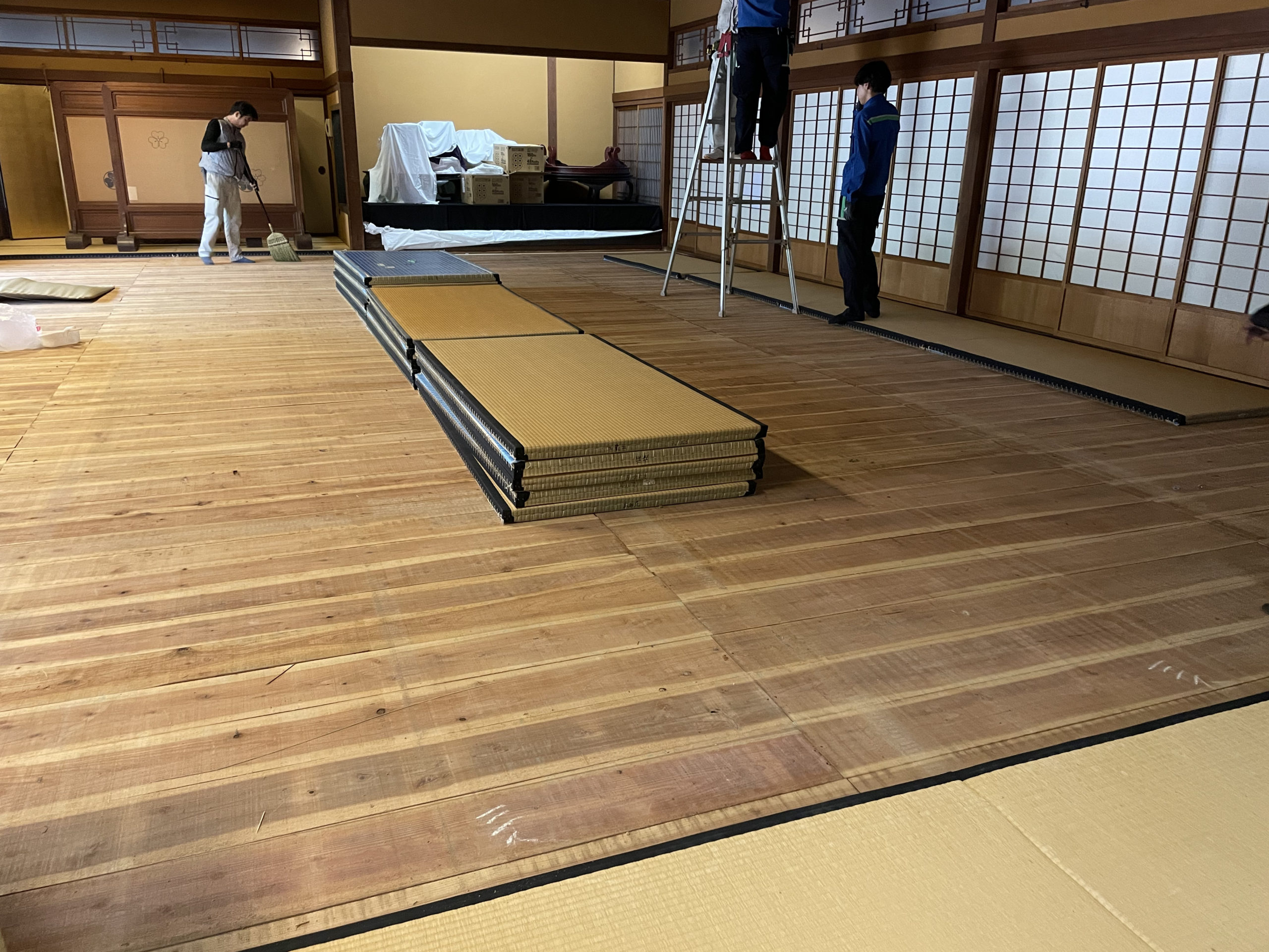 奥の床の間の畳を張り替えることができるのは、世界でただ一人。今回はその職人さんの力を借りて、床の間も一新されました。